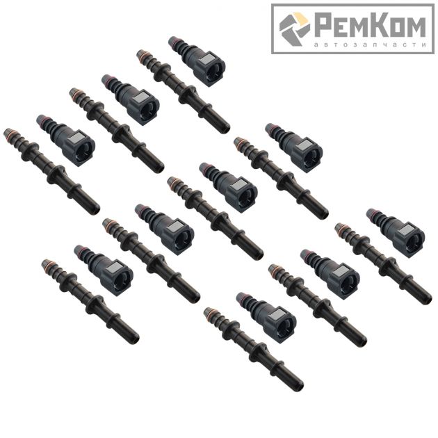 RK01343 * Комплект универсальных штуцеров топливных трубок для а/м: соединитель D=7.89мм L=85мм, штуцер D=9.49 мм (прямой) 10 шт