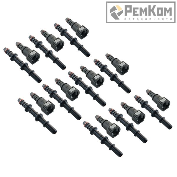 RK01345 * Комплект универсальных штуцеров топливных трубок для а/м: соединитель D=7.89мм L=85мм, штуцер D=9.89 мм (прямой) 10 шт